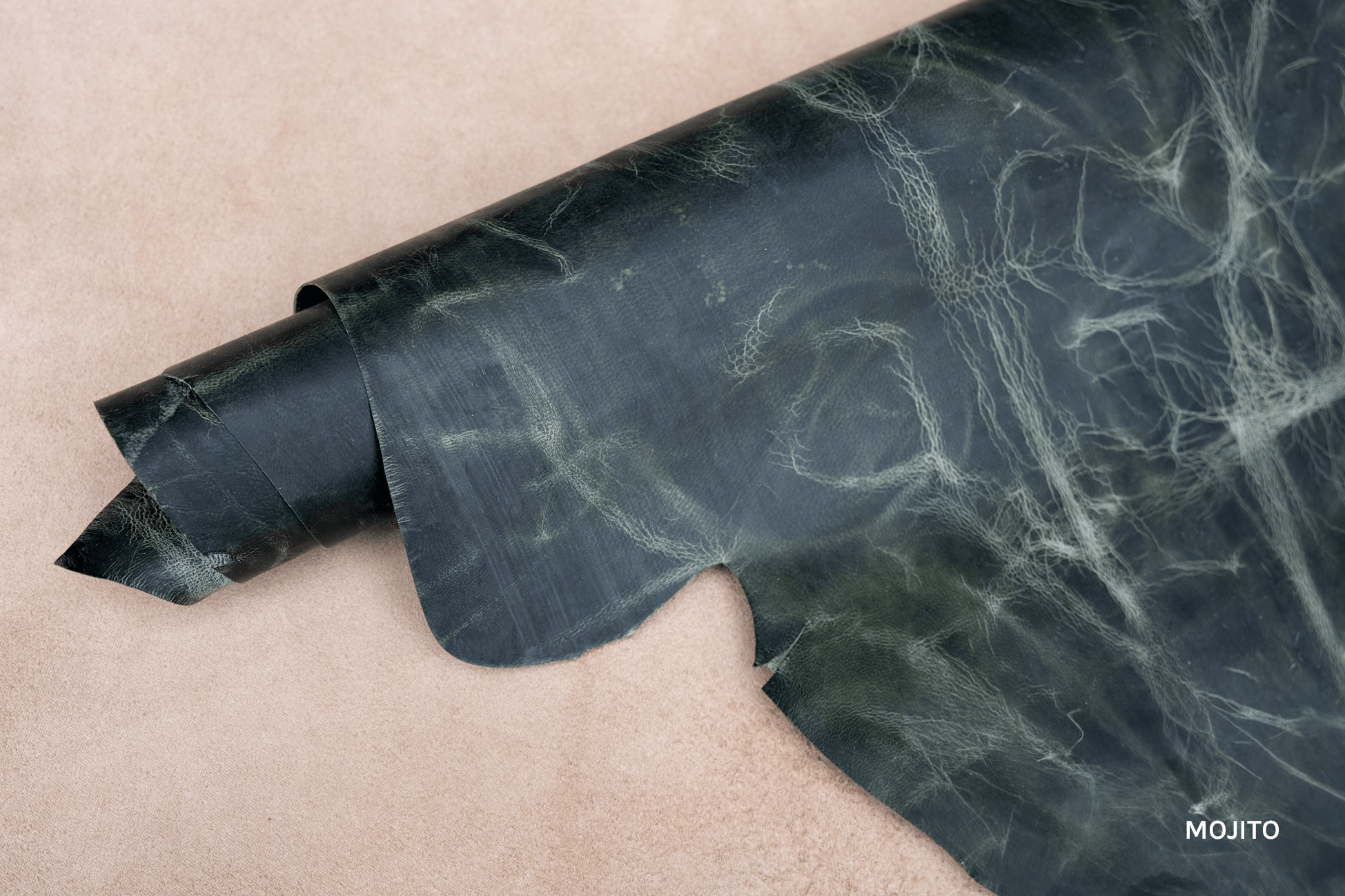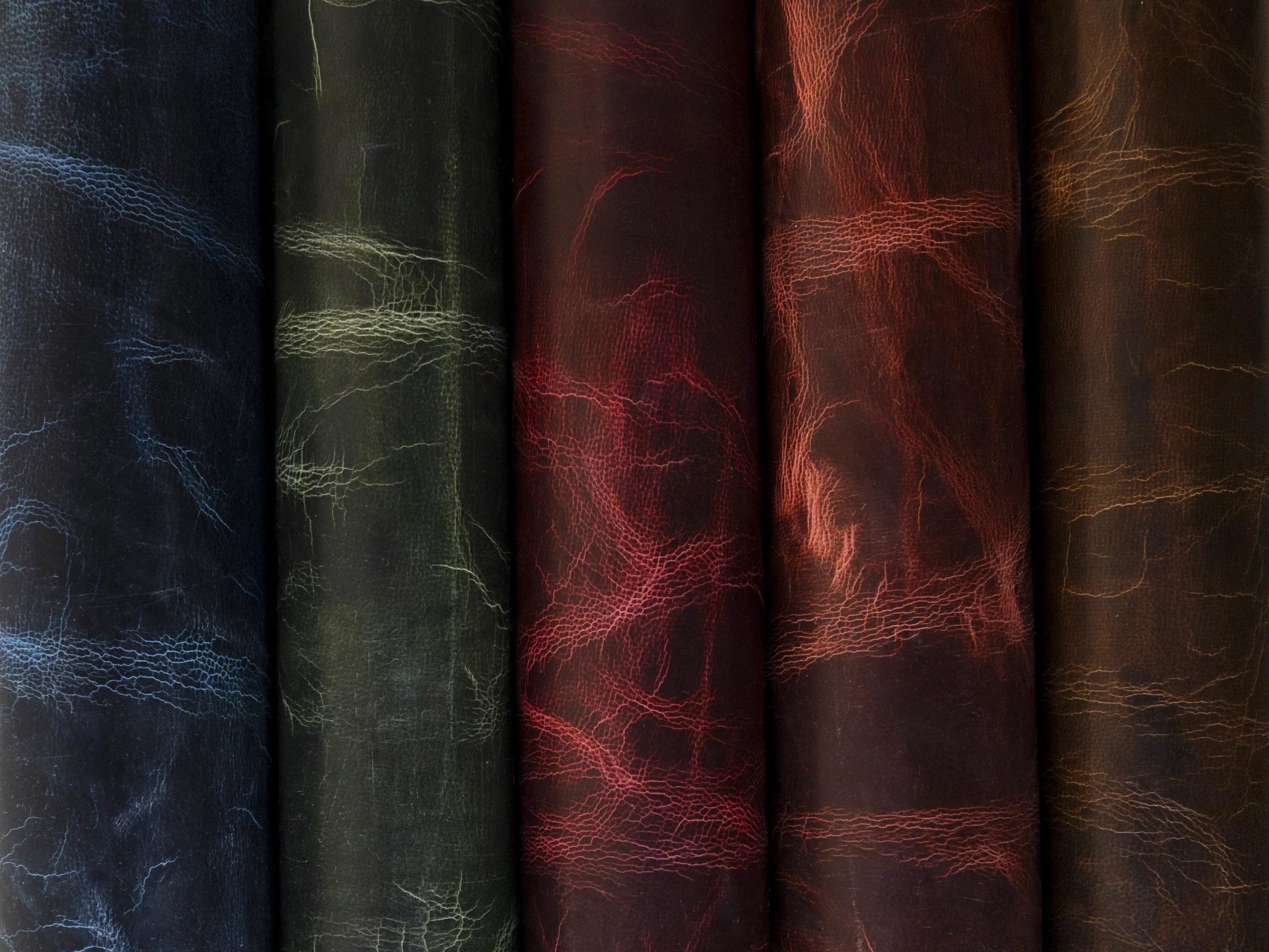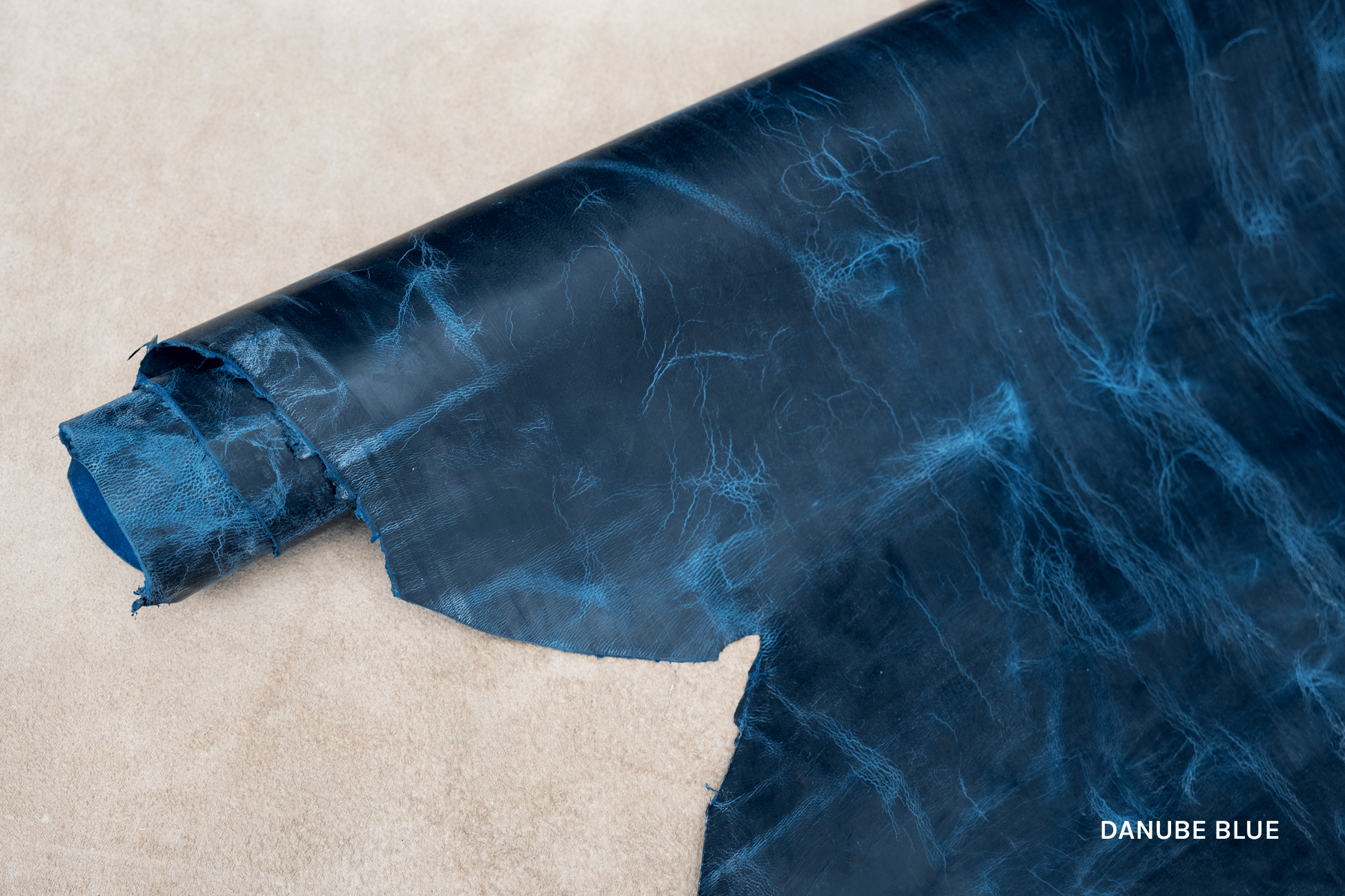The surface of this leather has a noticeably waxy feel, characteristic of the high oil composition. Whether left as-is or manipulated, this leather provides flexibility for a wide range of applications.