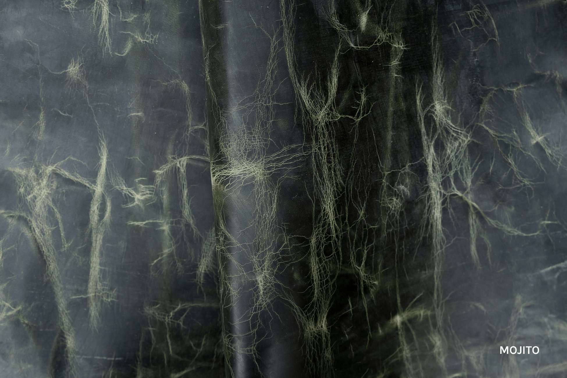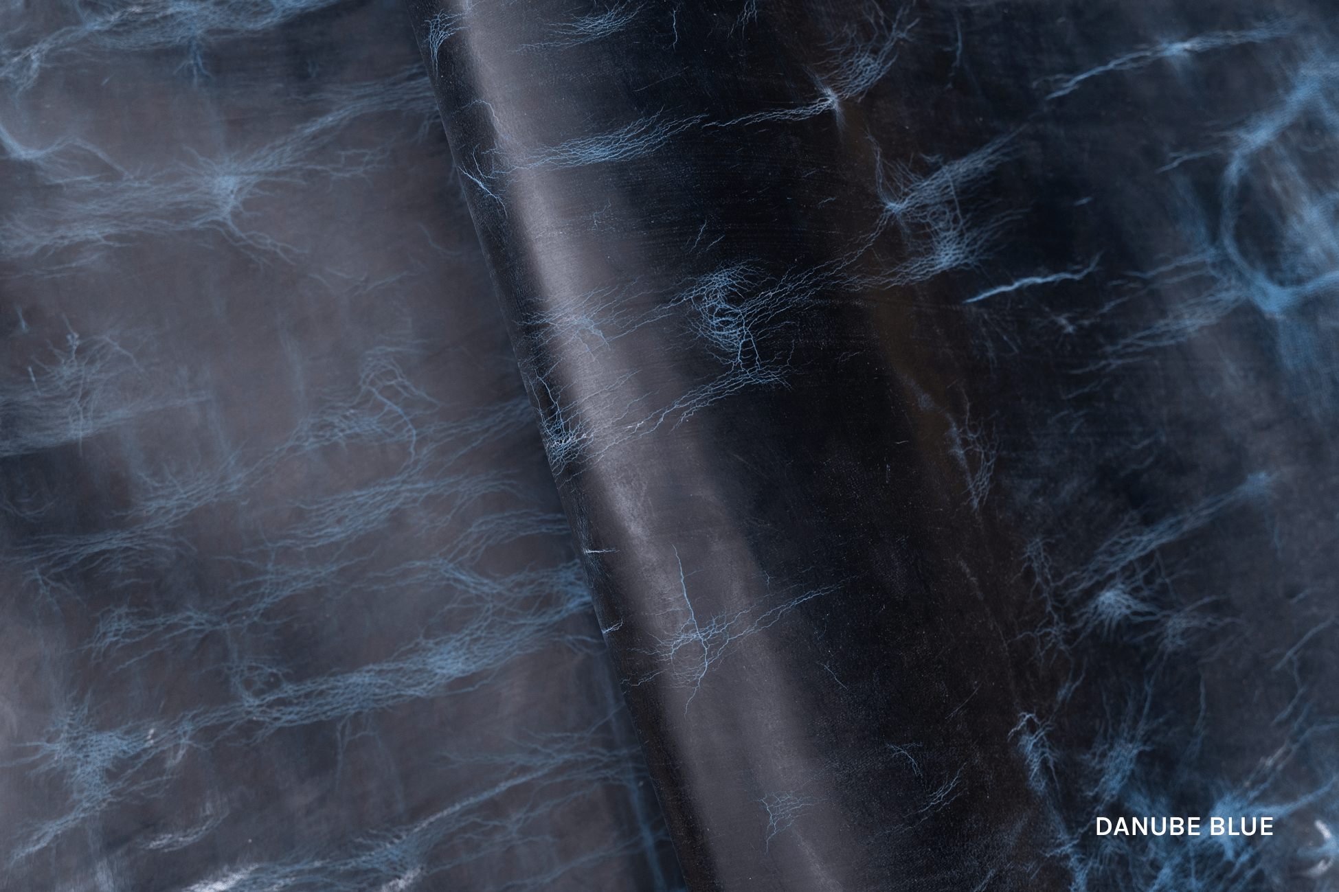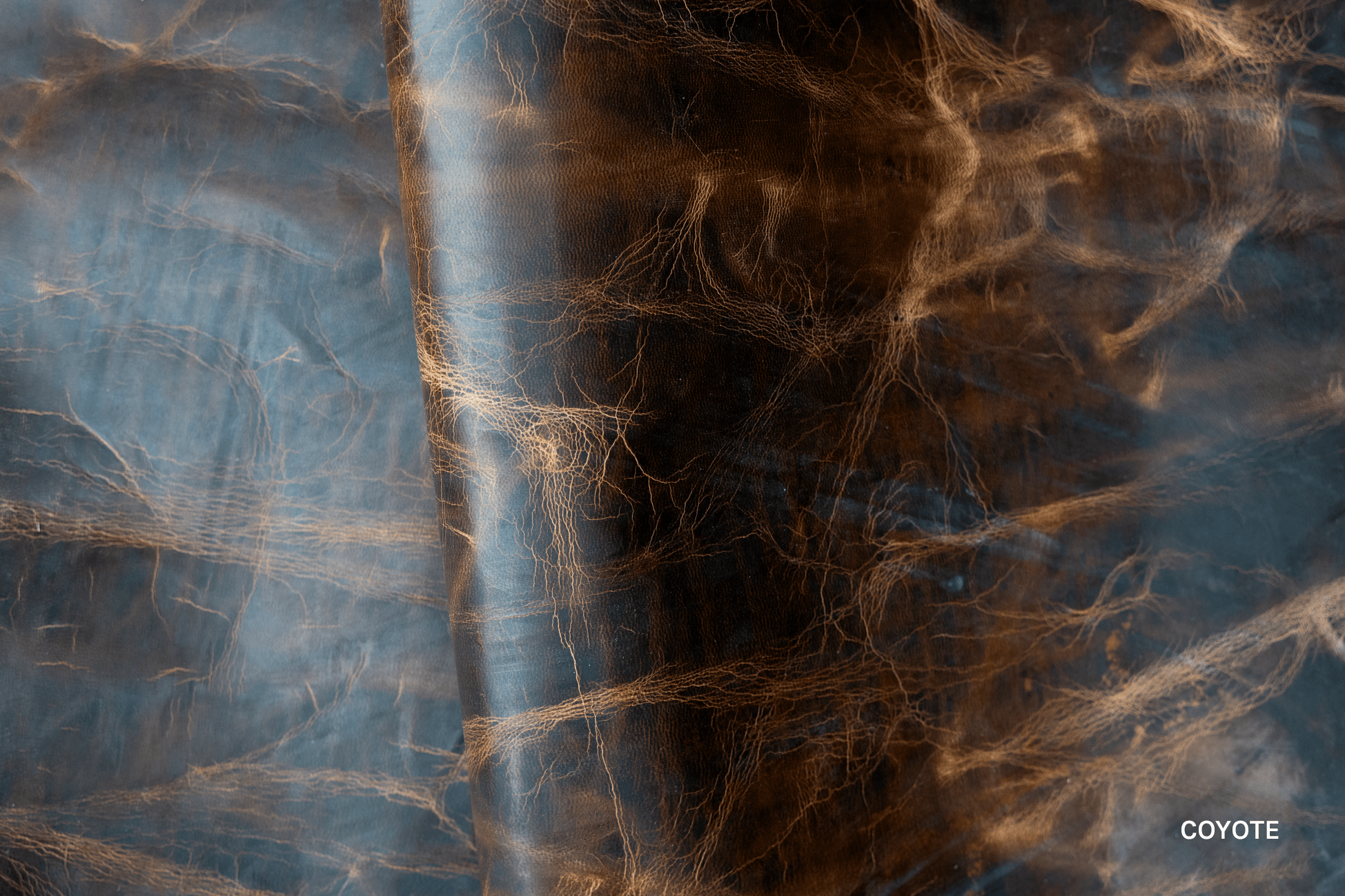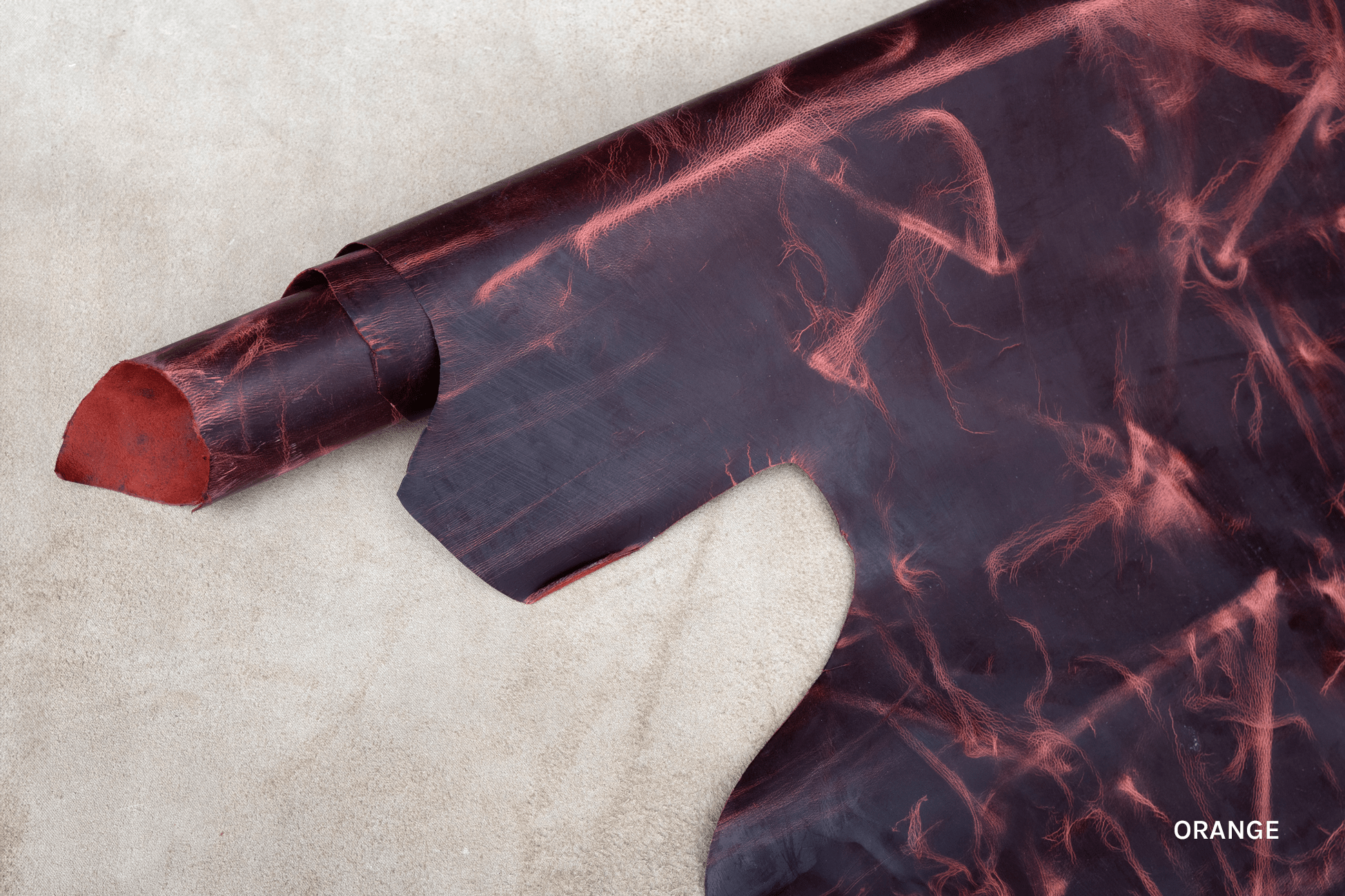 The surface of this leather has a noticeably waxy feel, characteristic of the high oil composition. Whether left as-is or manipulated, this leather provides flexibility for a wide range of applications.