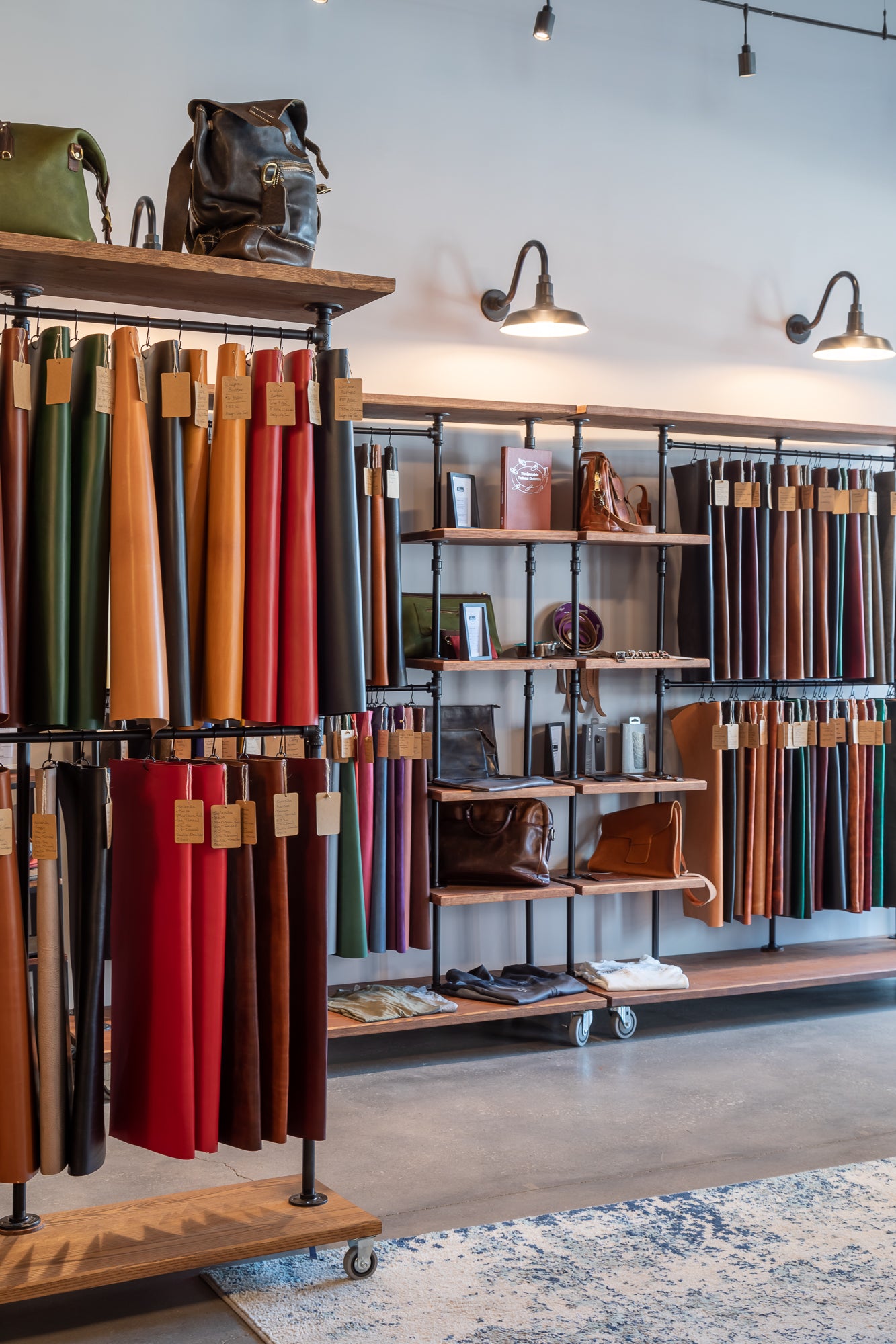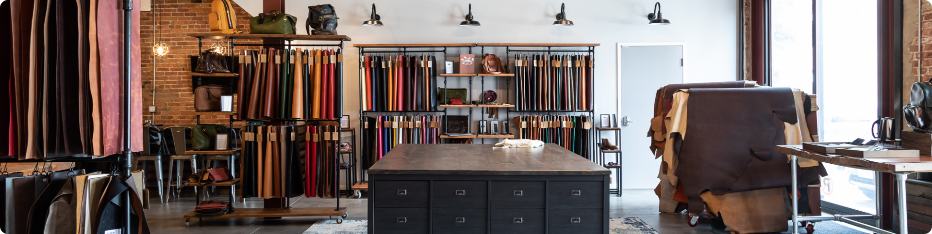 Located just a couple of miles from the Horween Tannery, the Tannery Row showroom offers a hands-on experience with all the leathers we have in stock—you can see, touch, and even smell them. Beyond leather hides, we also carry finished leather goods, leather glue, and leather care products.