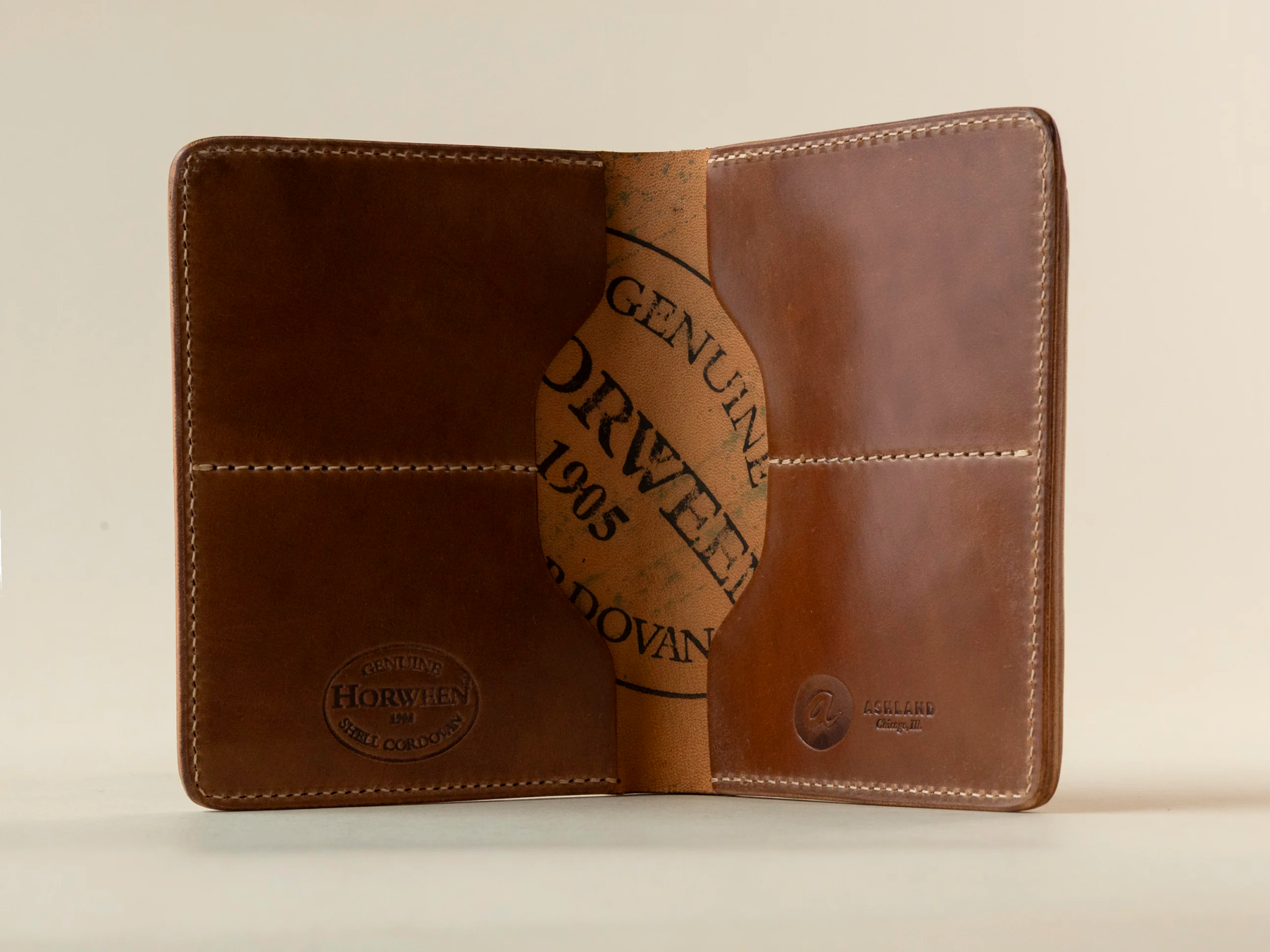 The Fat Herbie is a modern bifold, crafted from genuine Horween Shell Cordovan and 100% made in Chicago. As Ashland’s flagship wallet, it features a unique, non-stacked card layout that stays slim even when loaded with up to 16 cards. Four oversized card holders and a large bill compartment make it highly functional for everyday carry or travel, fitting every paper currency and even a passport in a pinch. Finished with hand-dyed edges, the Fat Herbie is built to age beautifully, developing a rich, lasting patina.
